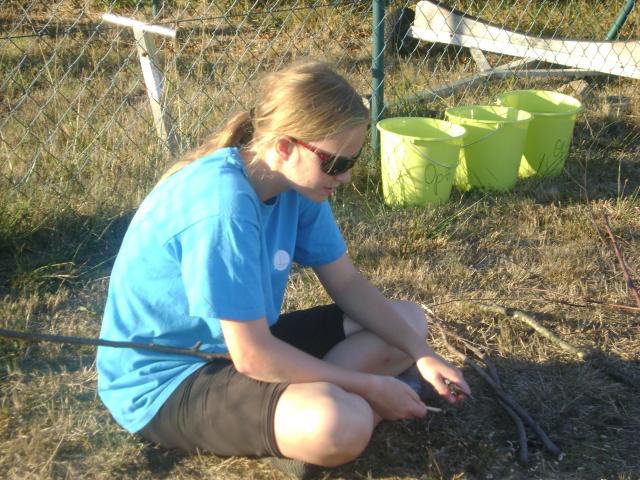 einen Teil der Arbeiten: die starken Jungs hoben eine Feuerstelle aus und sicherten sie mit Steinen, während die Mädels Eimer mit Wasser füllten. Gemeinsam ging