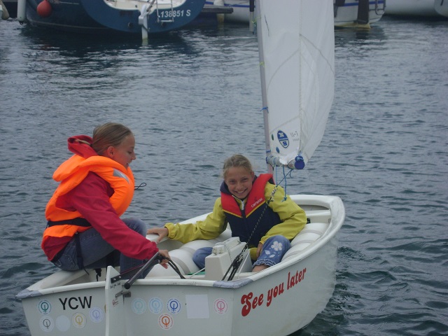 nämlich im Opti eine kleine Runde und machten dabei Bekanntschaft mit ersten Wenden oder sogar Halsen. Die kurze Ausfahrt mit dem